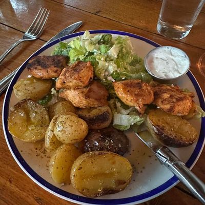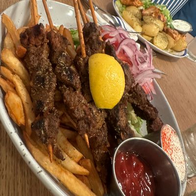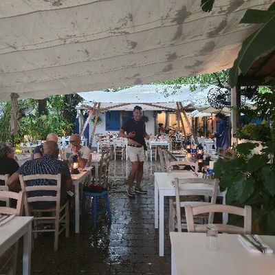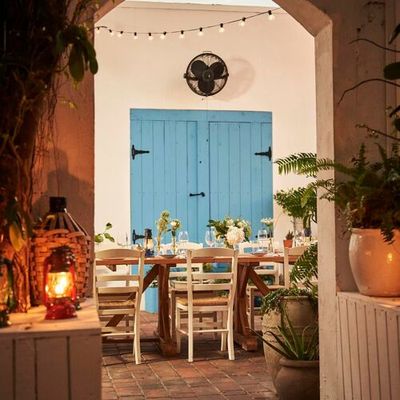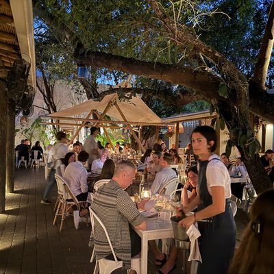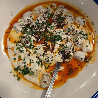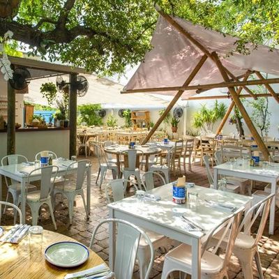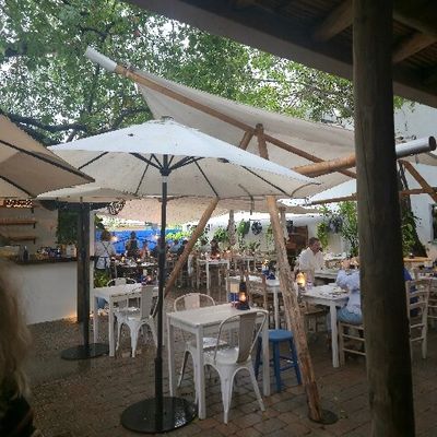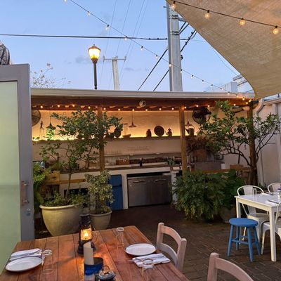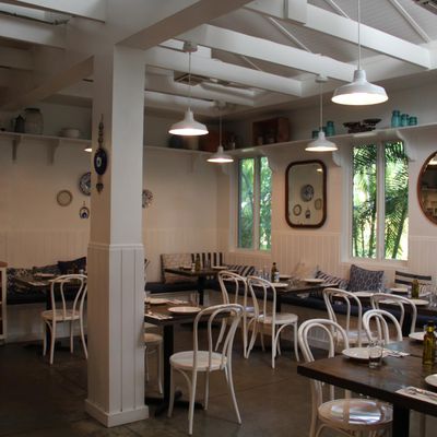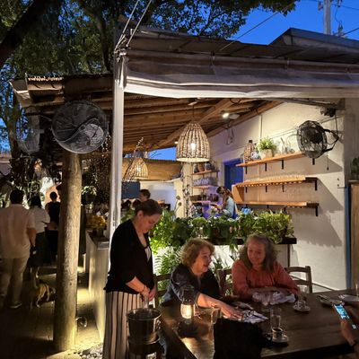 Charming Mediterranean restaurant in a restored 1940s home, featuring a beautiful outdoor patio, Greek and Turkish cuisine, and potentially high prices.