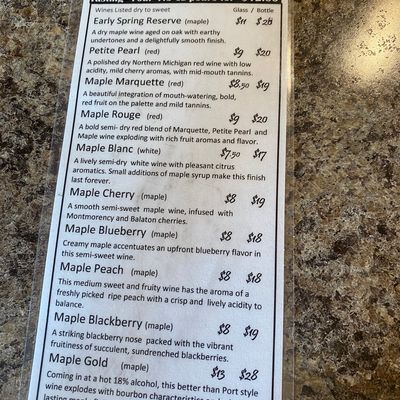 Unique establishment specializing in maple-based wines and other maple products. Visitors can enjoy wine tastings featuring a variety of flavors, often described as sweet and flavorful, with some resembling port wine. long_description