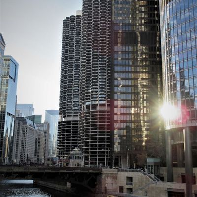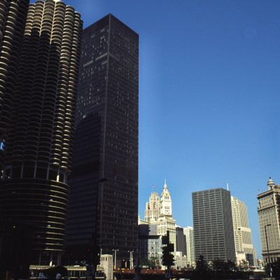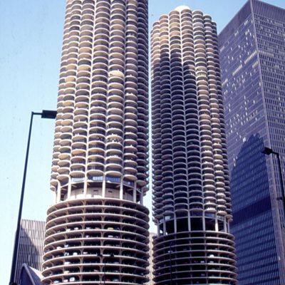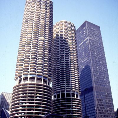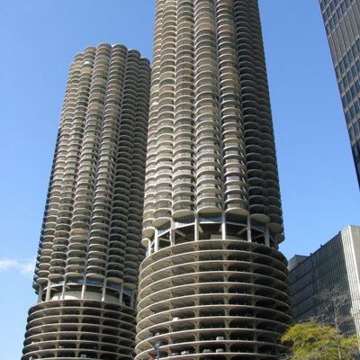Landmark mixed-use residential and commercial complex renowned for its distinctive 'corn cob' towers. Designed by Bertrand Goldberg in the 1960s, this architectural marvel was a pioneering concept for urban living, aiming to create a self-contained 'city within a city'. long_description