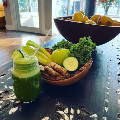 Healthy cafe with a tranquil atmosphere, offering fresh juices, smoothies, bowls, and other organic options.