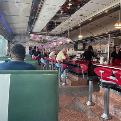 Red leather booths and an abundance of chrome set an old-timey scene for tackling a specialty sundae or one of Mayfair’s famous milkshakes.