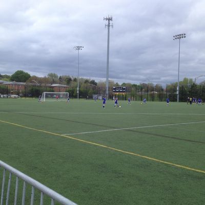 Well-maintained sports facility featuring artificial turf fields suitable for various sports like softball, lacrosse, and soccer. It offers amenities such as a snack bar, bathrooms, metal stands, and a small playground area.
