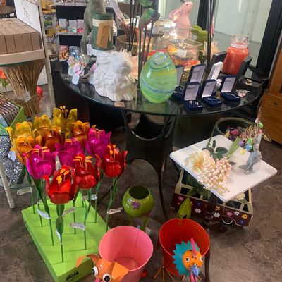 Customers highlight the shop's unique selection of items, including candles, jewelry, outdoor lawn decor, and a large variety of Ben Heggy's Chocolates. The staff is also noted for being talented and helpful with the custom framing process.reviews_potoo