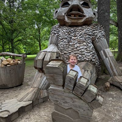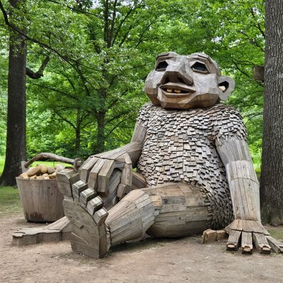 Sprawling landscape featuring diverse themed gardens, including Japanese, rose, and herb collections. Visitors can explore winding paths, discover whimsical troll sculptures, and enjoy peaceful areas for reflection.