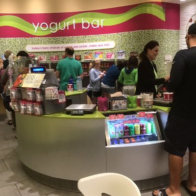 Chain frozen yogurt shop offering numerous flavors and toppings, located in a convenient shopping center with limited indoor seating.
