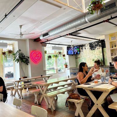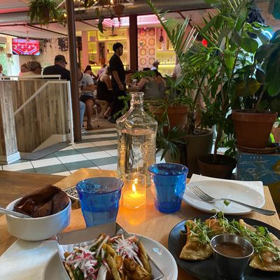 The bright, airy Mission Taqueria offers creative margaritas made with fresh squeezes from its juice bar and options for going spicy, including the unique Green Juice Margie.