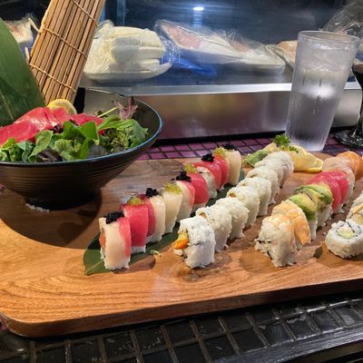 Fusion restaurant with a peaceful atmosphere offering Japanese and Asian cuisine including sushi, with both cooked dishes and all-you-can-eat options available.