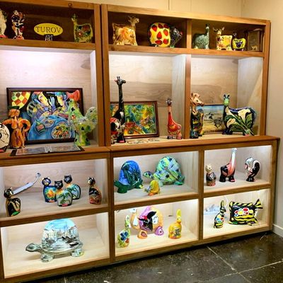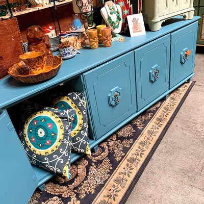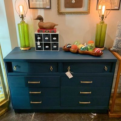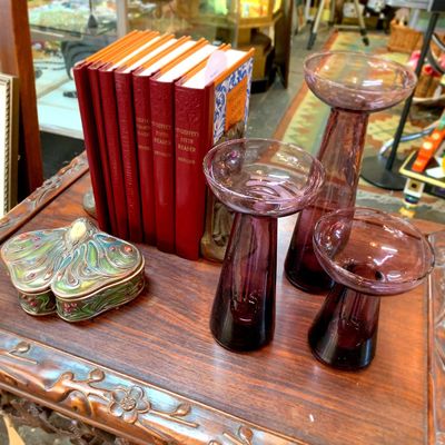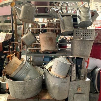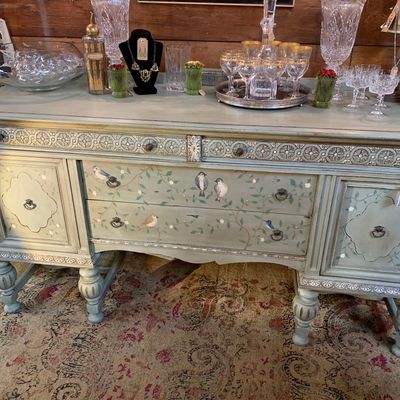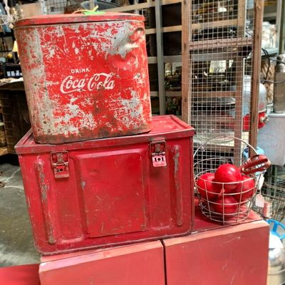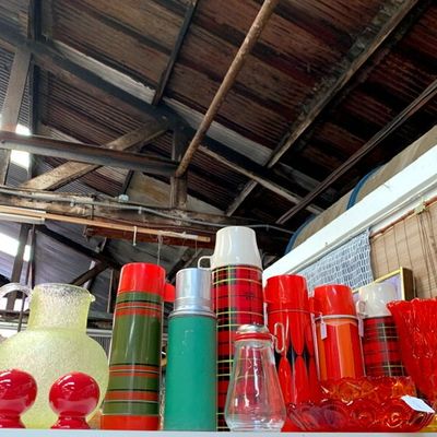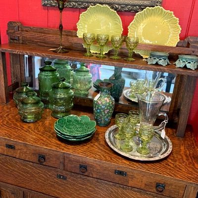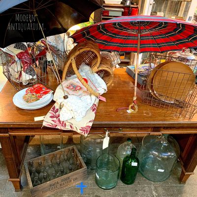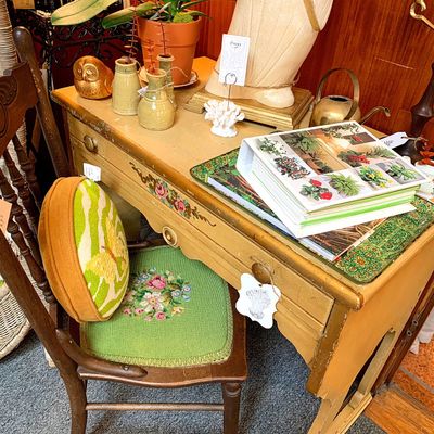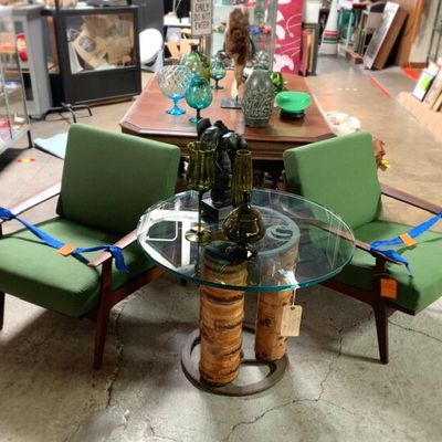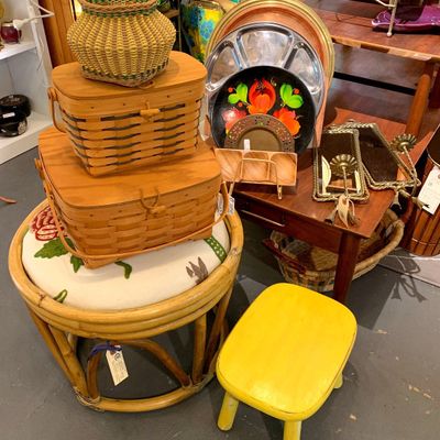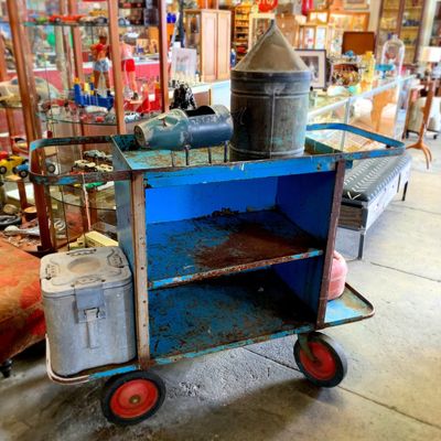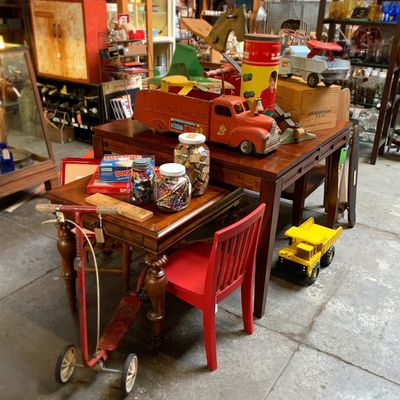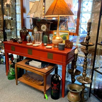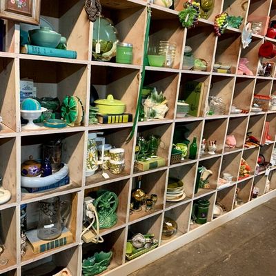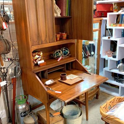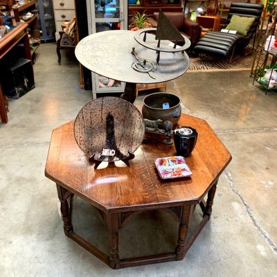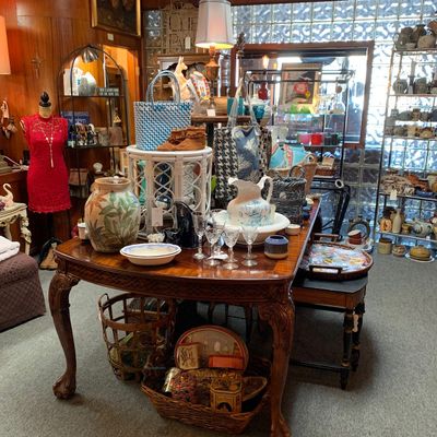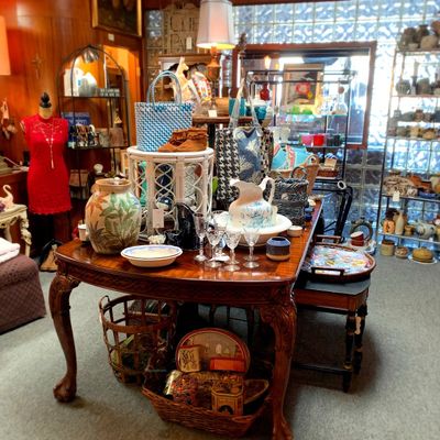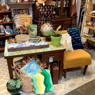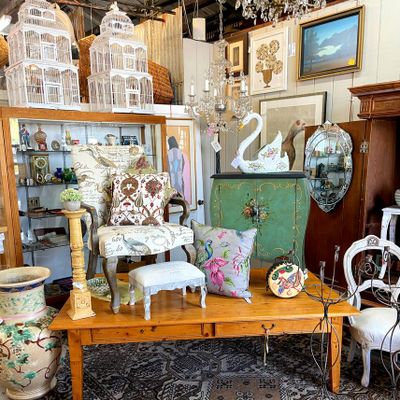 Spacious antique store offering a wide variety of items, including unique interior decor, art, and musical instruments. The shop features a mix of old and new pieces, with a notable selection of homemade items crafted in California.