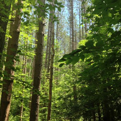 Natural retreat offering camping and cabin accommodations amidst deep green woods. It features private campsites with trees and shrubs, many situated along a river, and provides bear boxes for food storage.