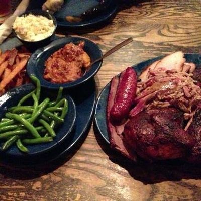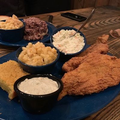 Barbecue restaurant with a bluesy atmosphere, offering generous portions of smoked meats, Southern sides, and a varied menu including seafood options.