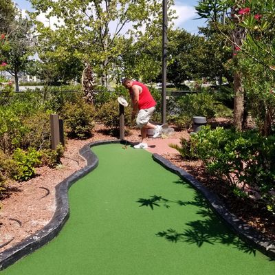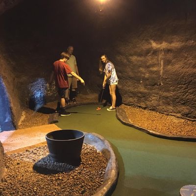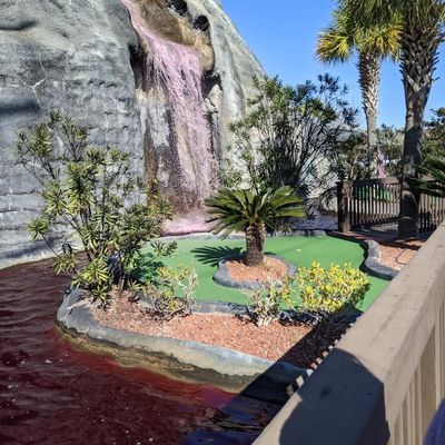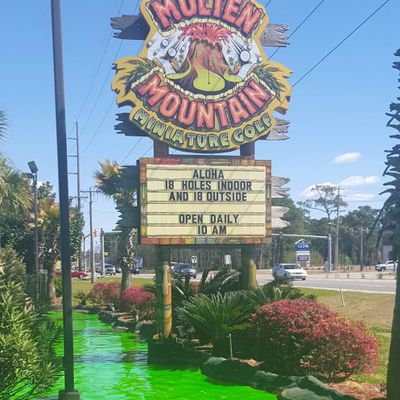 Molten Mountain Indoor Miniature Golf offers a unique miniature golf experience with both indoor and outdoor courses. The indoor course is themed as the inside of a volcano, featuring low lighting, atmospheric music, and occasional steam effects.