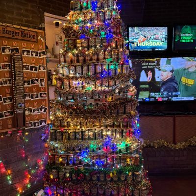 Casual establishment known for its lively atmosphere and diverse entertainment options. It features a unique interior decorated with thousands of colored lights, a beer can Christmas tree, pool tables, and a dedicated karaoke space.