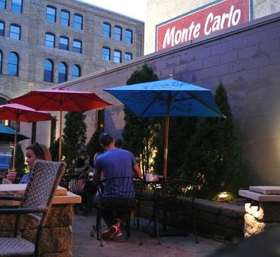 The Monte Carlo’s patio, strung with globe lights and shaded by umbrellas, is one of the best patios in the North Loop.