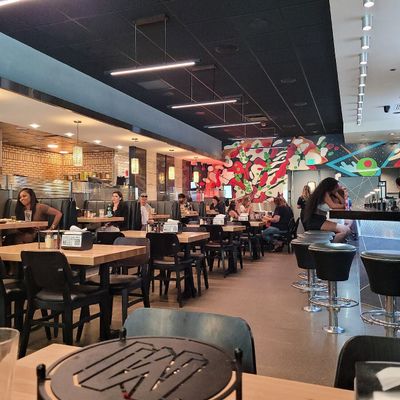 The space has a lively, high-energy atmosphere typical of a busy downtown spot. Bar seating offers a great vantage point for watching the action during peak hours.ambiance_potoo