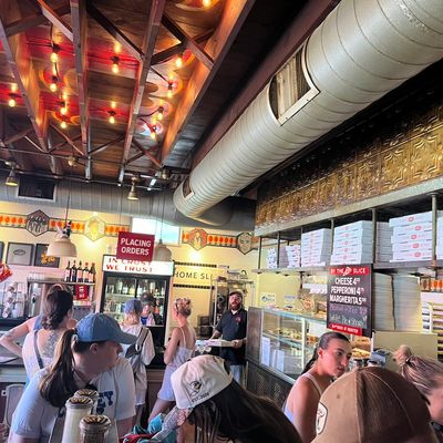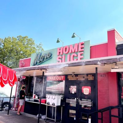South Congress’s slice joint maintains a steady crowd eager for New York-style pizza and subs, with More Home Slice offering a convenient takeout option to bypass the line.