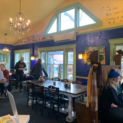Comfy booths, bright surroundings, and an enchanted back garden are tailor-made for lingering over breakfast, especially with friendly, gentle, and unobtrusive service.