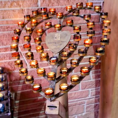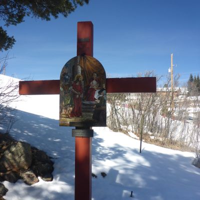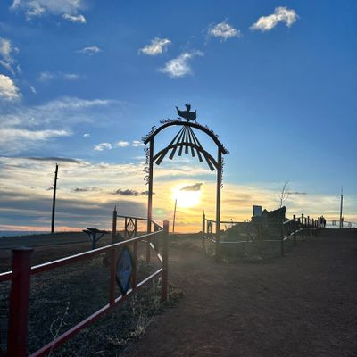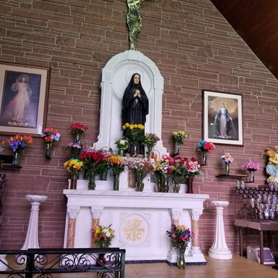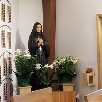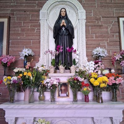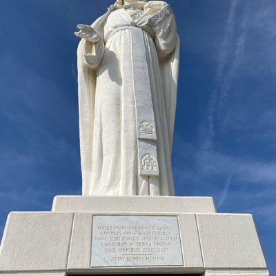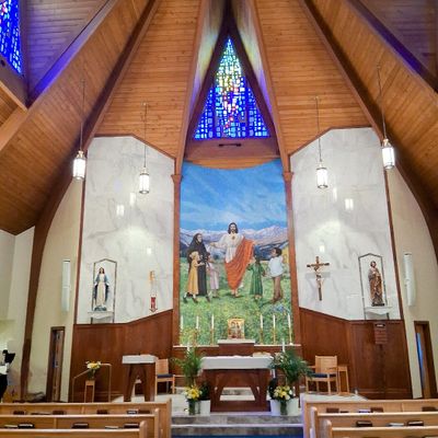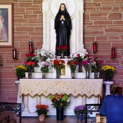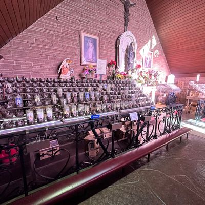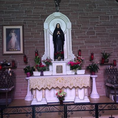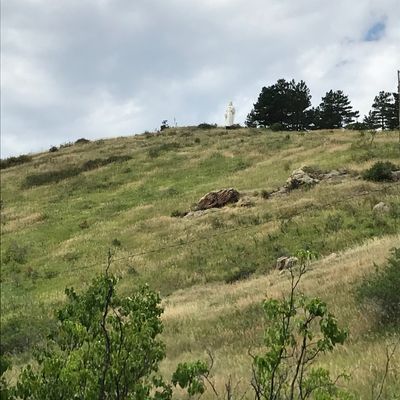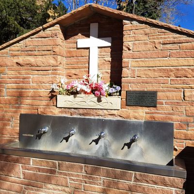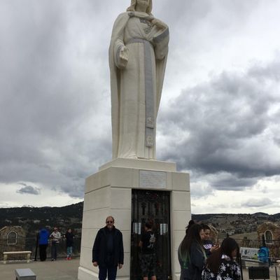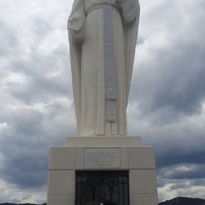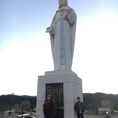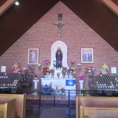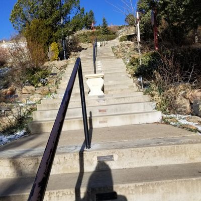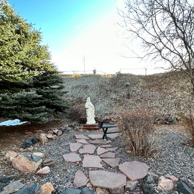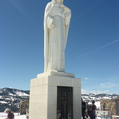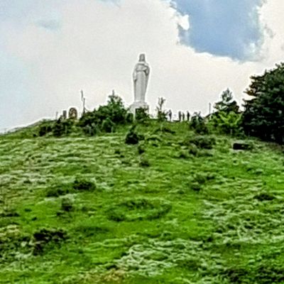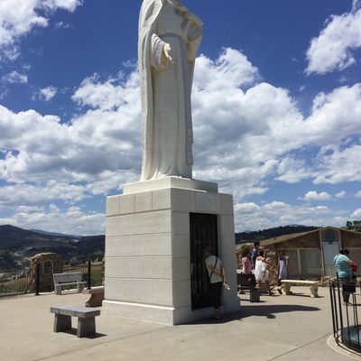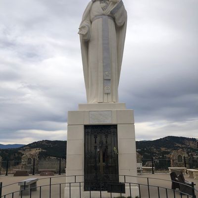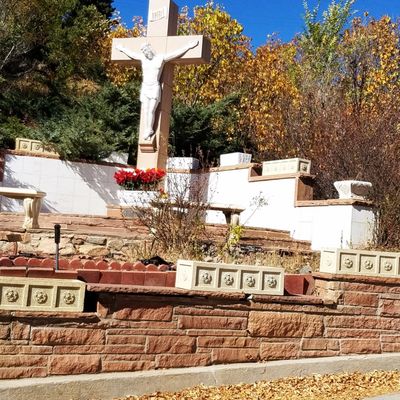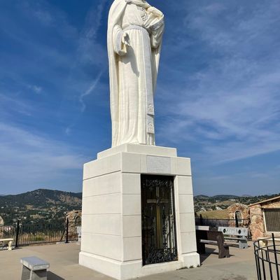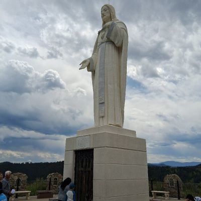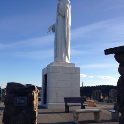 Peaceful and inspiring religious site featuring a chapel, a gift shop, and extensive grounds for exploration. Visitors can ascend numerous steps to reach a prominent shrine with scenic views.