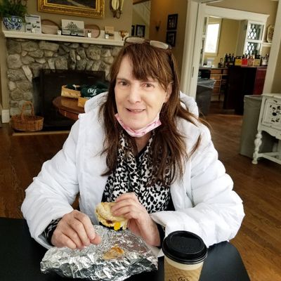 Renovated house offering American cafe fare, bakery items, and sandwiches with outdoor seating and a fireplace, in a charming setting.