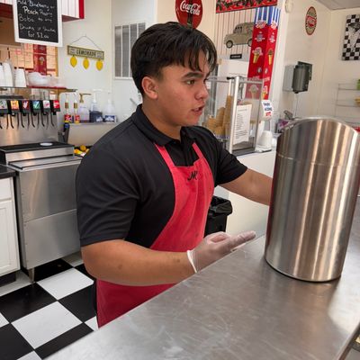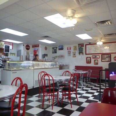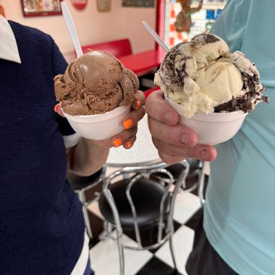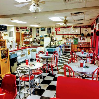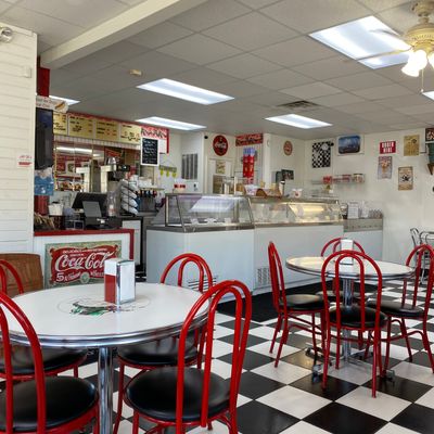Retro ice cream parlor downtown with generous portions, American-style ice cream, cobblers, and other snacks.