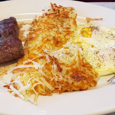 Family-friendly diner serving generous portions of classic American breakfast, lunch, and dinner fare, known for its friendly service and home-style cooking.