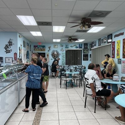 Family-owned ice cream parlor with 50+ flavors, including dairy-free options, offering a friendly atmosphere and generous portions in a local shopping center.