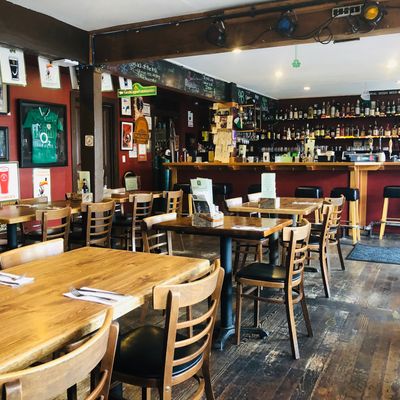 Casual pub with a dog-friendly patio, offering Irish and American cuisine including pies and fish & chips, known for its Guinness but sometimes inconsistent service.