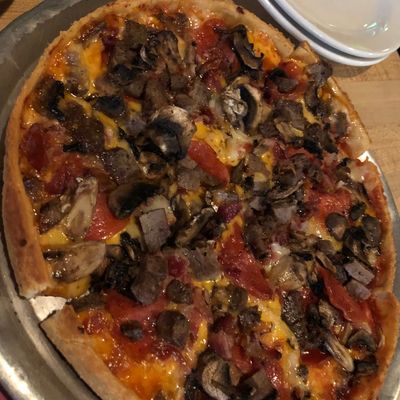 Long-standing establishment offering a diverse menu of Italian, American, and pizza options. Known for its thin-crust pizza with a unique sweet sauce and cornmeal texture, the restaurant also serves other popular items like wings and calzones.