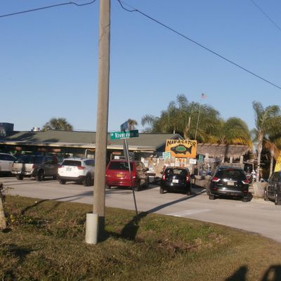 Riverside bar and restaurant with a relaxed atmosphere, serving American and seafood dishes, including popular options like gator bites and burgers, plus live music.