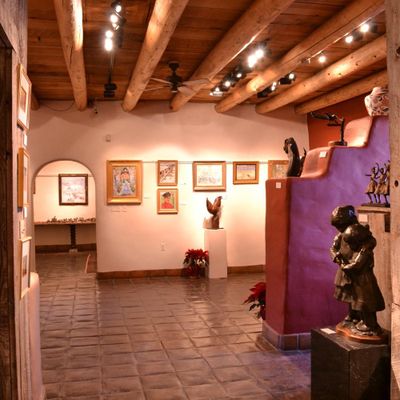 Distinguished art gallery featuring a wide-ranging collection of Southwestern and Western art. The venue boasts multiple rooms filled with paintings, sculptures, jewelry, and objects, housed within a beautiful historic building.