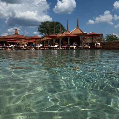 The atmosphere is grand and polished, offering a sense of high-end luxury with many guests receiving dedicated 24-hour butler service. The sprawling grounds provide a secluded, high-end retreat feel, whether you are relaxing by the pools or engaging in high-energy activities like zip-lining.ambiance_potoo