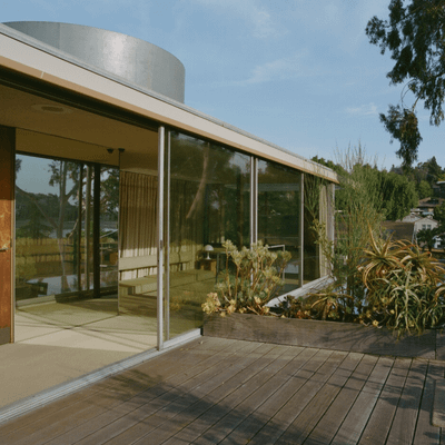 Built by Viennese-American architect Richard Neutra with a no-interest loan from Dutch philanthropist Dr. C.H. Van Der Leeuw, this experimental "glass house" was designed to accommodate his office and two families on a small lot. After a fire, Richard and his son Dion redesigned the main house, applying their learned principles of sun louvers, water roofs, and "nature-near" design.story