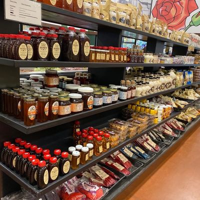 Large market offering fresh produce, a butcher shop, deli, and cafe with American cuisine, known for its reasonable prices and wide selection.