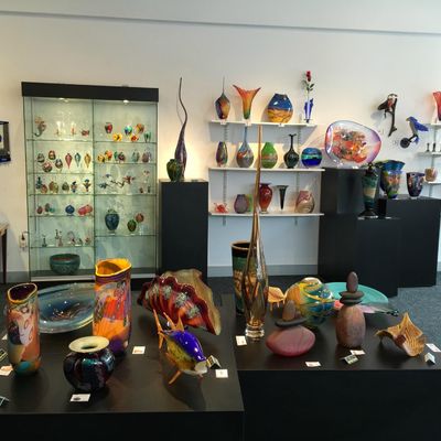 NJM Gallery was a destination for unique, handmade blown glass art. The gallery featured a diverse collection of colorful and intricate glass pieces, ranging from decorative figurines to functional items like jewelry and wine glasses. long_description