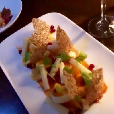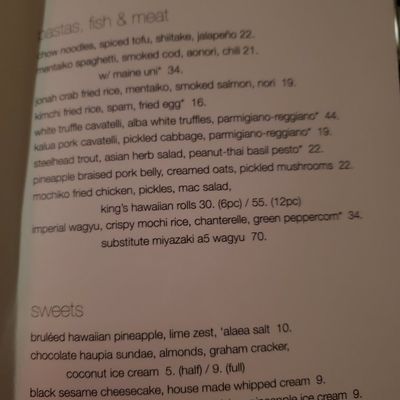 The Monkfish Liver Torchon, served with a sweet fruity sauce and soft bread, is a rich and creamy standout. Also consider the tender Pork Belly, braised in pineapple with greens and yams.food