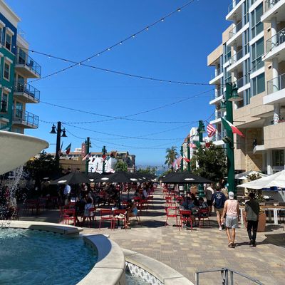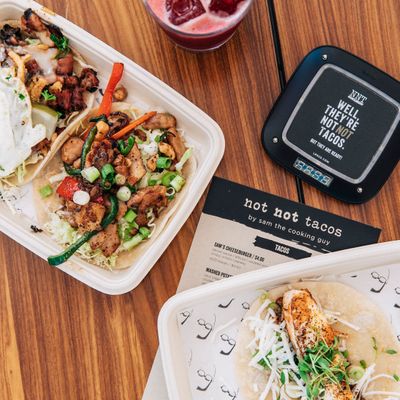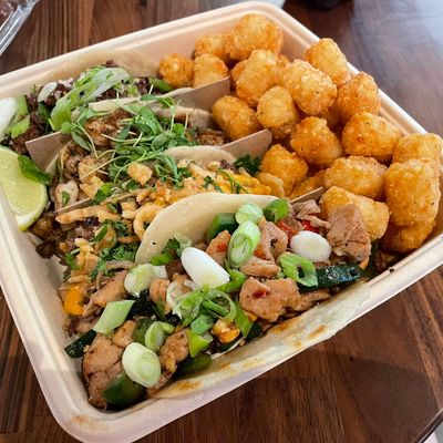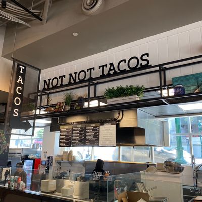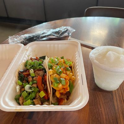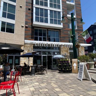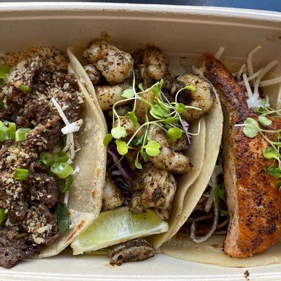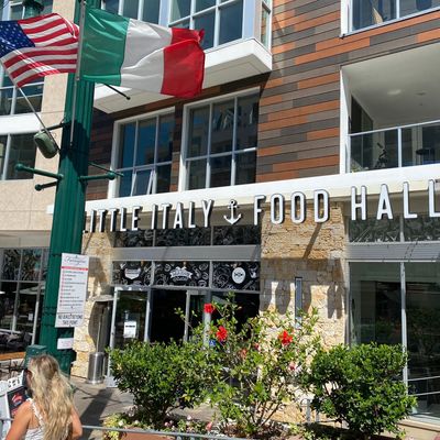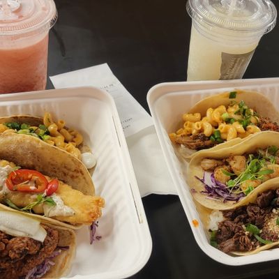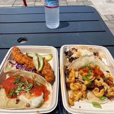 Little Italy food hall restaurant with a unique, creative taco menu featuring globally-inspired flavors, a full bar, and a lively atmosphere.