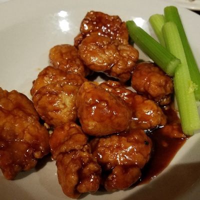 Focus on the New York-style cheese pizza and pair it with a draft beer like Sam Adams. The menu also includes wings, which can be ordered extra crispy for added texture.food_potoo