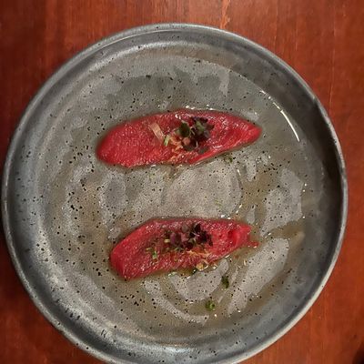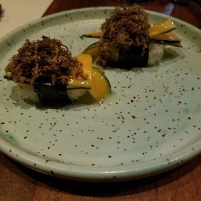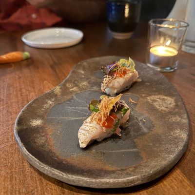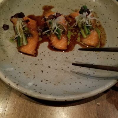 Enjoy a curated tasting menu that blends traditional raw favorites with creative cooked dishes and desserts. The menu is thoughtfully paired with a selection of wine and sake to complement each course.food_potoo