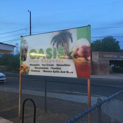 Small, casual dessert spot offering raspados, ice cream, and other treats, with a charming nighttime atmosphere.