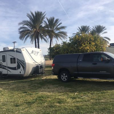 Park offering full hookups and amenities such as a pool and fishing pond. It caters to both short-term visitors and long-term residents.