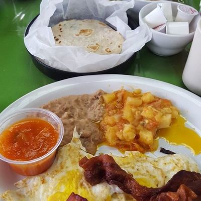 Casual Mexican restaurant known for its delicious tacos and breakfast plates, offering generous portions and affordable prices in a somewhat dated setting.