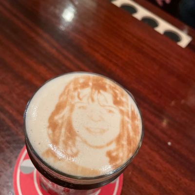 Welcoming establishment offering a wide selection of beers and whiskies. Patrons can enjoy unique touches like having their picture printed on a Guinness.