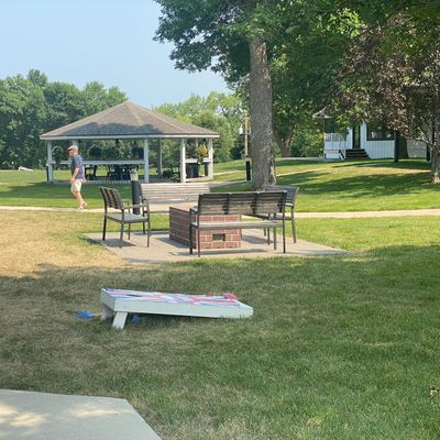 Okoboji Commons Hotel offers a unique British-themed lodging experience with spacious, clean rooms and a variety of outdoor amenities. Guests can enjoy fire pits, a gazebo, and easy access to the lake and bike paths.