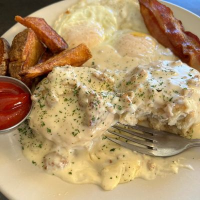 Patrons frequently highlight the amazing brunch offerings, specifically the French toast and potatoes with beer cheese. The location is also noted for its great atmosphere and easy conversation.reviews_potoo