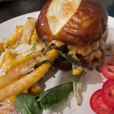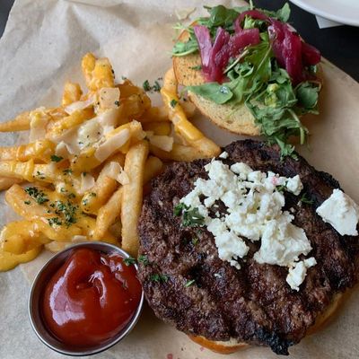 The brunch menu is a standout, featuring decadent French toast and crispy potatoes topped with rich beer cheese. Complement the meal with a fresh mimosa for a classic weekend experience.food_potoo