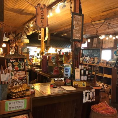 Rustic barbecue restaurant with a quirky general store vibe, offering live music, and featuring wood-fired pizzas alongside its barbecue.