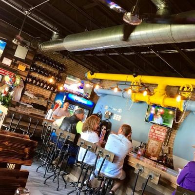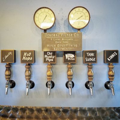 Remodeled former water treatment building that now serves as a unique microbrewery and restaurant. It offers a variety of house-made beers, wines, and mixed drinks, complemented by a menu featuring BBQ and other American dishes.