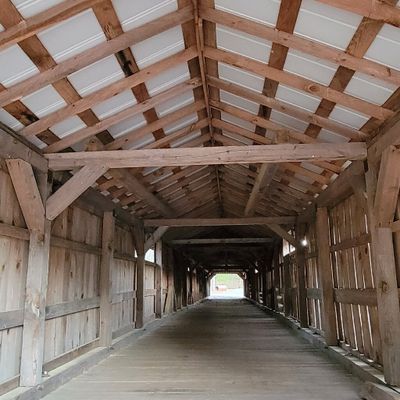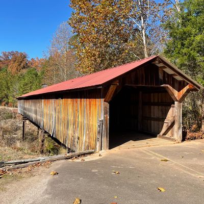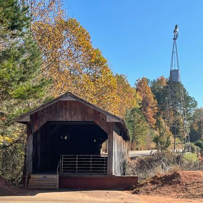 Scenic historic site featuring the longest covered bridge in North Carolina. The park offers walking trails, old machinery demonstrations, and hosts annual events like the 'Ole Mill Crank Up' which celebrates traditional crafts and antique engines. long_description