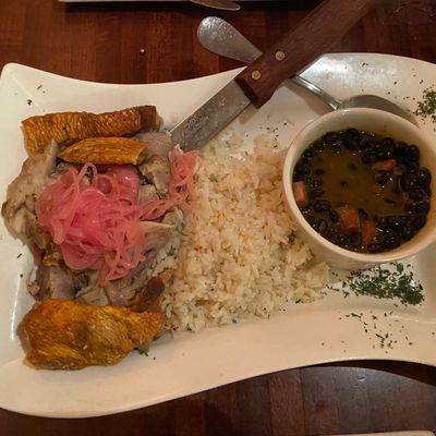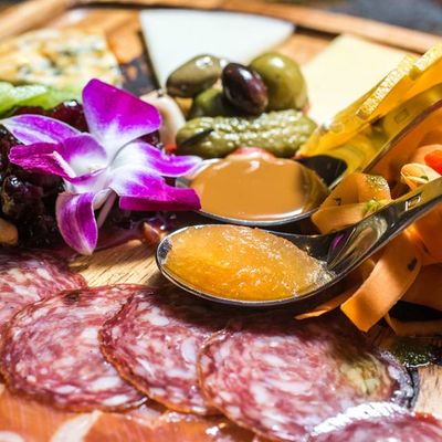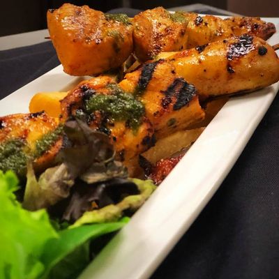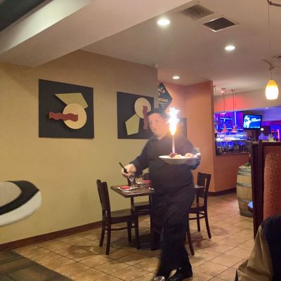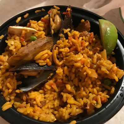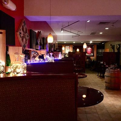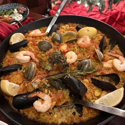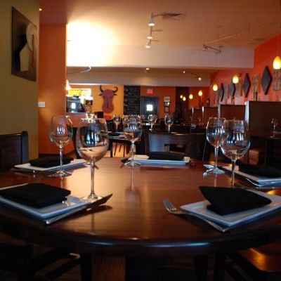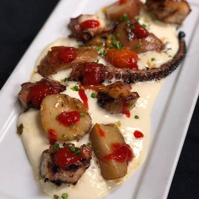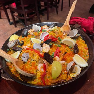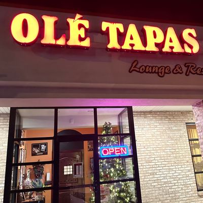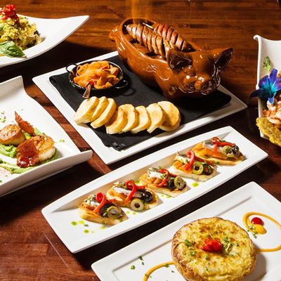 Vibrant tapas restaurant with a warm atmosphere offering Spanish and Mediterranean cuisine, including paella and creative tapas, in a strip mall setting.