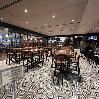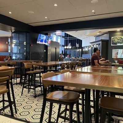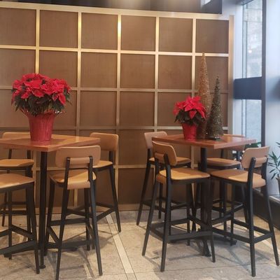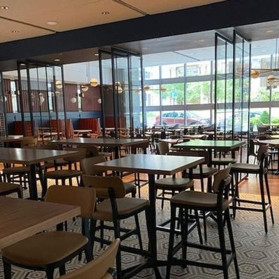 The atmosphere is polished and pleasant, offering a welcoming environment for a quick meal or a relaxed drink. It serves as a bright, accessible space with a service-focused energy.ambiance_potoo
