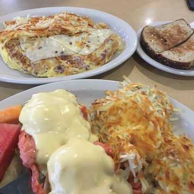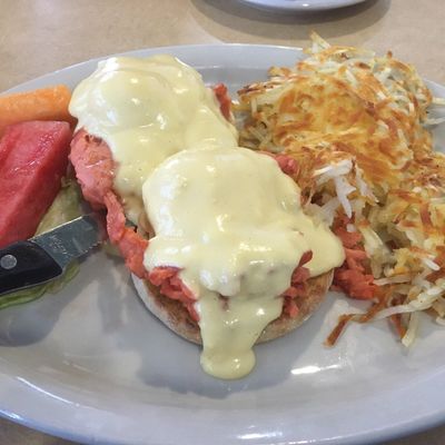 Well-established diner offering American comfort food, including standout Eggs Benedict and generous portions, with generally good service but inconsistent food quality.